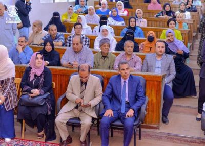بحضور الدكتور رجاء فؤاد غازي وكيل الكلية لقطاع شئون الدراسات العليا والبحوث والدكتور أميرة عبدالسلام زايد وكيل الكلية لقطاع شئون التعليم والطلاب والدكتور السعيد بدير سليمان وكيل الكلية لقطاع شئون خدمة المجتمع وتنمية البيئة.