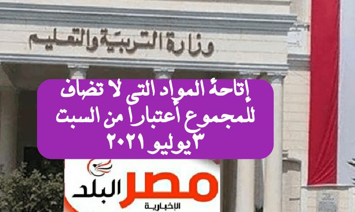طبقا للكتاب الدوري رقم 12 بشأن ضوابط وآليات امتحانات شهادة الثانوية العامة ، فقد قررت وزارة التربية والتعليم والتعليم الفني أنه سيتم إتاحة المواد التي لا تضاف للمجموع ( التربية الدينية، التربية الوطنية، الاقتصاد والإحصاء) لجميع الطلاب اعتبارا من يوم السبت۲۰۲۱/۷/۳