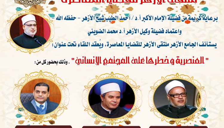 يواصل ملتقى “الأزهر للقضايا المعاصرة” بالجامع الأزهر الشريف، فعالياته الأسبوعية غدا ، تحت عنوان: ” العنصرية وخطرها على المجتمع الإنساني”، وذلك تحت رعاية فضيلة الإمام الأكبر الدكتور أحمد الطيب شيخ الأزهر الشريف، وبتوجيهات من الدكتور محمد الضويني وكيل الأزهر، وإشراف الدكتور عبد المنعم فؤاد، المشرف العام على الرواق الأزهري، والدكتور هاني عودة، مدير عام الجامع الأزهر.