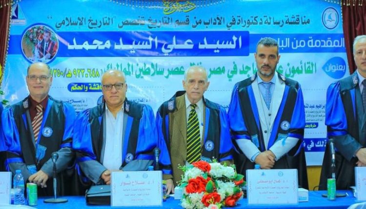 تكونت لجنة المناقشه والحكم من أ د / كمال السيد ابو مصطفى استاذ التاريخ والحضارة الإسلامية كلية التربية جامعة الإسكندرية؛ أ د / صلاح نوار استاذ التاريخ والحضارة الإسلامية كلية دار العلوم جامعة الفيوم؛ ا د / ابراهيم سلامة استاذ التاريخ والحضارة الإسلامية ورئيس قسم التاريخ كلية الاداب جامعة الاسكندرية، أ د / صبحي عبدالمجيد إدريس استاذ التاريخ والحضارة الإسلامية كلية الآداب جامعة كفرالشيخ.