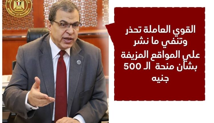 حذرت ونفت وزارة القوي العاملة من جديد من أساليب النصب التي يديرها بعض الأشخاص، باسم الوزارة على صفحات التواصل الاجتماعي ، والمواقع الإلكترونية المزيفة فيما يتعلق بصرف 500 جنيه كمساعدة لكل مواطن.