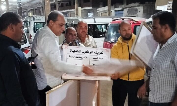 وقام بوضع لوحات كبيرة بالمواقف موضح بها تعريفة الركوب الجديدة لكل موقف وكذلك وضع استيكر علي السيارة موضح به خط السير وتعريفة الركوب، مشددًا على عدم السماح لأي سائق بالتلاعب بالتعريفة المقررة وتطبيق القانون على كل سائق مخالف يقوم بزيادة التعريفة واستغلال المواطنين.