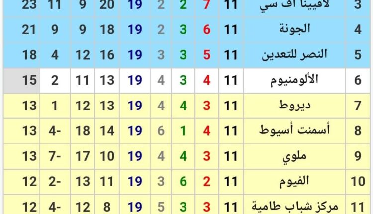وفيما يلي ترتيب مجموعة القاهرة بعد انتهاء الجولة الحادية عشر:-