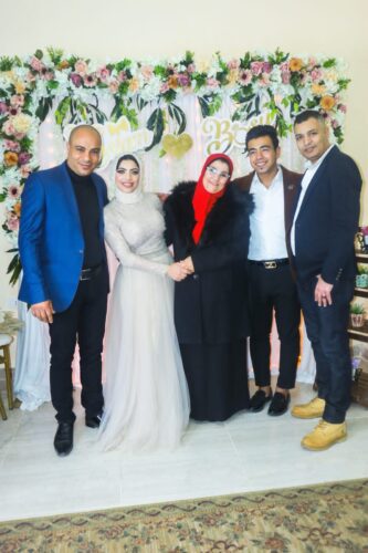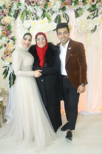 كما يتقدم كلا من الاستاذ محمد بسيونى موجة لغة عربية بقطاع شرق بالازهر الشريف والد العريس والاستاذ زياد وعبدالرحمن ومؤمن ومدام هاجر اخواة العريس والاستاذة سلمى نصر ام العروسة والاستاذ محمد ومحمود ونشوى واميرة وامانى اخواة العروسة والغائبين الحاضرين بروحهم ودعواتهم ام العريس المرحومة الاستاذة امل حسين مأمور ضرائب عين شمس وابو العروسة الحاج احمد علي بخالص التهانى القلبية للعروسين ؛ متمنيا لهما دوام التوفيق والنجاح في حياتهما العملية؛ والاستقرار الأسرى.