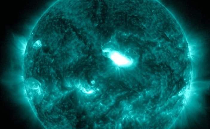 أطلقت بقعة شمسية نشطة انفجار قوي بإتجاه الكرة الأرضية مباشرة في 8 أكتوبر 2024 نتج عنه توهج شمسي قوي بلغت قوته (X1) وقد سجل مرصد ديناميكا الشمس التابع لوكالة ناسا وميض الأشعة فوق البنفسجية الشديد ضمن نشاط الدورة الشمسية 25.
