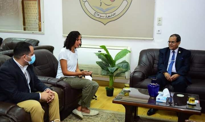 استقبل الدكتور مصطفى عبدالخالق القائم بعمل رئيس جامعة سوهاج، الدكتورة ليلى قناوي مسئولة البرامج بالسفارة السويسرية، والوفد المرافق، لمناقشة تطوير صناعة “اللوف” ضمن مخرجات تنمية الريف المصري بعدة قرى بمحافظة سوهاج، وذلك بحضور الدكتور هاني السلموني عضو مجلس إدارة منظمة “إنروت” للتنمية، والدكتور أشرف عكاشة مدير حاضنة أعمال مسار بالجامعة، والدكتور محمد عبدالله مدير وحدة تنمية الأعمال بالجامعة.