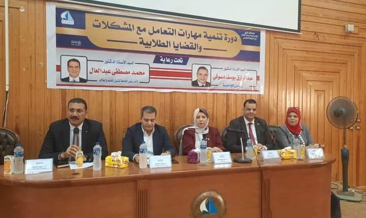 الندوة نظمتها إدارة النشاط الإجتماعي بالإدارة العامة لرعاية الشباب بالجامعة .. بمقر كلية التربية النوعية .. بعنوان «تنمية مهارات التعامل مع القضايا الطلابية» .. برعاية الدكتور عبدالرازق دسوقي رئيس الجامعة والدكتورمحمد عبد العال نائب رئيس الجامعة لشئون التعليم والطلاب والدكتورعلي صبري أمين عام الجامعة وبحضور الدكتورة أماني شاكر عميد كلية التربية النوعية.