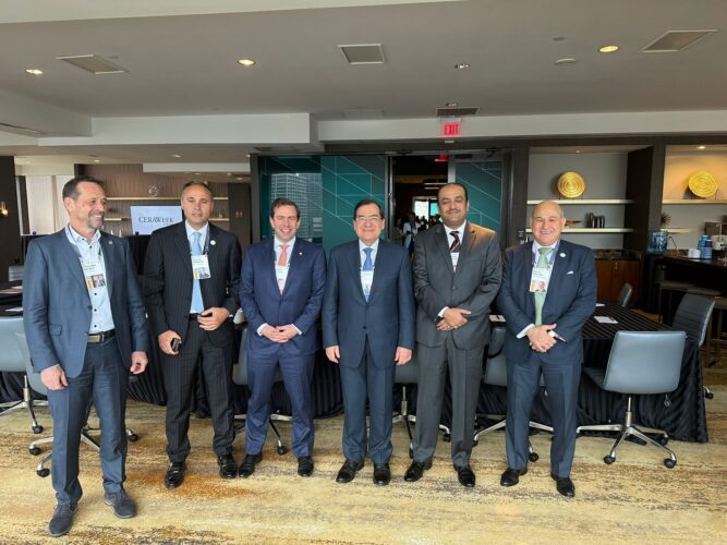 عقد المهندس طارق الملا وزير البترول والثروة المعدنية ، مناقشات موسعة فى جلسة حوارية ضمت عدداً من شركات الطاقة العالمية ، على هامش المشاركة فى مؤتمر سيراويك ، وشهدت المناقشات حواراً حول خطط مصر للتحول الطاقى ومستجدات الاستفادة من الهيدروجين الأخضر ودور الغاز الطبيعى فى تحقيق الانتقال الطاقى واهتمامها بالتقاط الكربون واستخدامه وتخزينه ، وانفتاحها على التعاون فى هذا التوجه الذى يمثل فرصة استثمارية مميزة ، خاصة وأن لديها المقومات اللازمة لذلك. *ويشهد جلسة مناقشة دراسة منتدى غاز شرق المتوسط لمواجهة تحديات خفض الانبعاثات* وشهد المهندس طارق الملا وزير البترول والثروة المعدنية وقائع جلسة نقاشية ضمن فعاليات مؤتمر سيراويك تحت عنوان “منتدى غاز شرق المتوسط: مواجهة تحديات خفض الانبعاثات فى كافة أوجه صناعة الغاز ، دراسة حول منطقة شرق المتوسط” ، وشارك فى الجلسة أسامة مبارز أمين عام منتدى غاز شرق المتوسط والمهندس كريم الدسوقى نائب رئيس شركة بكتل ومدير الشركة فى مصر وممثلى مجموعة ستاندرد أند بورز العالمية. وشهدت الجلسة مناقشة المبادرة التى أطلقها منتدى غاز شرق المتوسط لخفض الانبعاثات بمنطقة شرق المتوسط والتحديات والفرص والخطوات العملية التى يمكن اتخاذها لخفض انبعاثات الدول بشكل أمثل وخاصة فى كافة أوجه صناعة الغاز ، وعقب الملا خلال الجلسة بأن مصر تقدم كافة أوجه الدعم لهذه الجهود وأكد على أهمية تطبيق التوصيات التى تم التوصل لها.