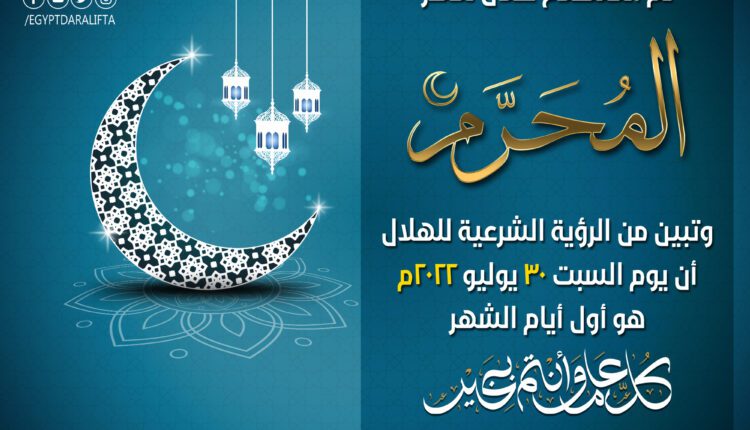 وعلى ذلك تُعلن دارُ الإفتاءِ المصريةُ أن يومَ الجمعة الموافق التاسع والعشرين من شهر يوليو لعام ألفين واثنين وعشرين ميلاديًّا هو المتمم لشهر ذي الحجة لعام ألف وأربعمائة وثلاثة وأربعين هجريًّا، وأن يوم السبت الموافق الثلاثين من شهر يوليو لعام ألفين واثنين وعشرين ميلاديًا هو أول أيام شهر المحرم لعام ألف وأربعمائة وأربعة وأربعين هجريًّا