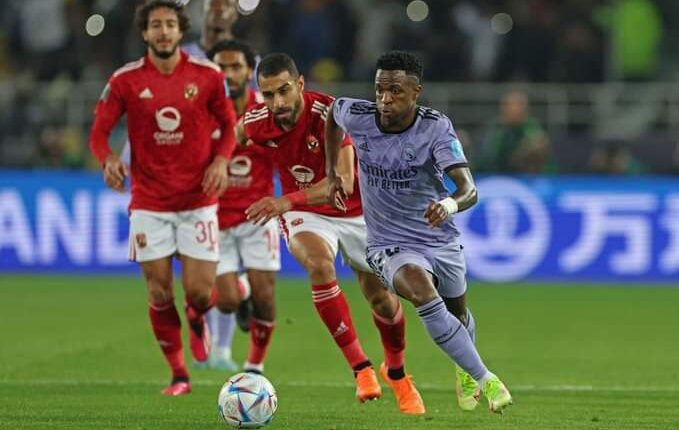 جاءت أهداف ريال مدريد عن طريق كل من البرازيلي فينسيوس في الدقيقة 42، الذي استفغل خطأ مدافع الأهلي، محمود متولي، قبل وانفرد بمرمى محمد الشناوي وسدد الكرة “لوب” في شباك حارس الأهلي بطريقة رائعة.