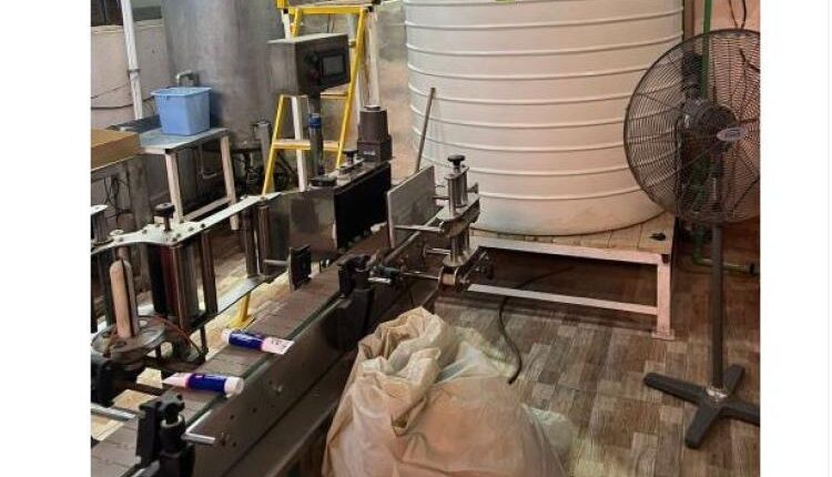 وعثر بداخل المصنع على طن مادة خام “جيل 1164 عبوة معجون صابون مركز، 1700 عبوة جيل أشعة سونار، 1.8 طن مادة خام لإنتاج المنظفات والجيل، 2 تنك بلاستيك مملوء بالماء، وأدوات ومعدات التصنيع، وكميات كبيرة من العبوات الفارغة”.