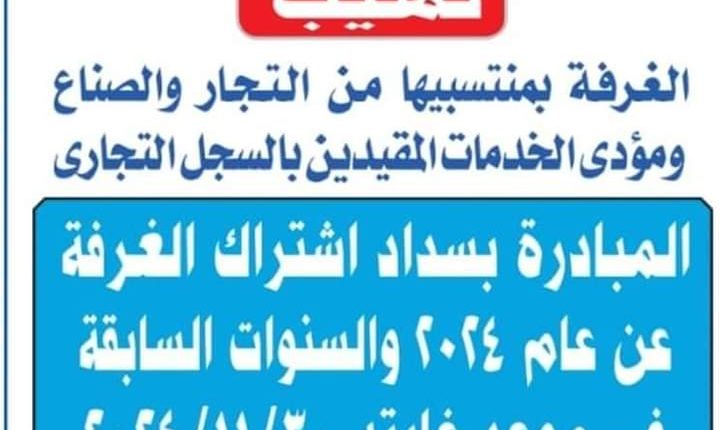 أهابت غرفة الدقهلية برئاسة المهندس أحمد رعب فى بيان رسمى منتسبيها من التجار والصناع و مؤدى الخدمات المقيدين بالسجل التجارى سرعة المبادرة بسداد رسوم الغرفة عن عام ٢٠٢٤ والسنوات السابقة فى موعد غايته ٣٠ نوفمبر القادم تفاديا فرض غرامة التاخير فى سداد الرسوم كتعويض مقرر قانونيا بنسبة (٢٥%) من قيمة الرسوم السنوية وذلك طبقا للمادة ٢٥ من القانون رقم ٦لسنة٢٠٠٢ من قانون الغرف التجارية .