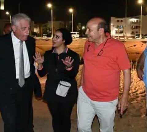 رافق المحافظ خلال الجولة الدكتورة ايناس سمير نائب المحافظ، واللواء أيمن الشريف السكرتير العام، واللواء أحمد الإسكندراني السكرتير العام المساعد القائم بأعمال رئيس مدينة شرم الشيخ، والمهندس الاستشاري كرم معوض استشاري المشروع، والمهندس خالد الغنام ممثل الإنتاج الحربي القائم بتنفيذ المشروع.