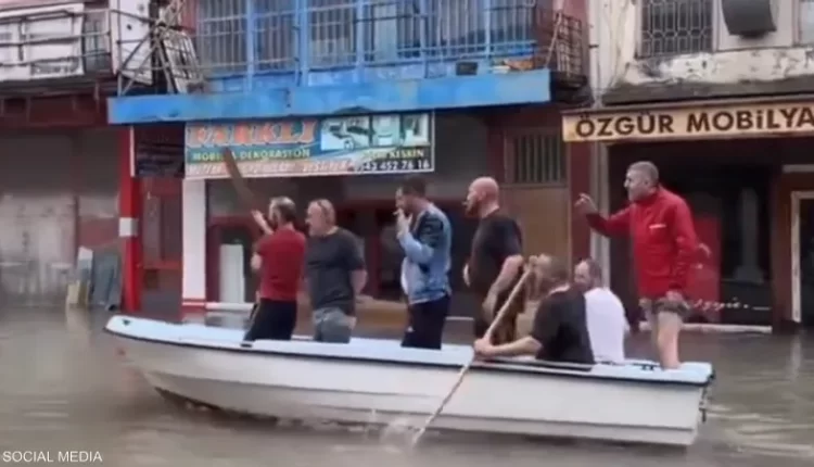 وصل منسوب المياه في بعض شوارع تركيا، عقب الفيضانات التي تضرب البلاد منذ بداية الشهر، إلى درجة أن بعض السكان لجؤوا إلى القوارب لاستخدامها وسيلة مواصلات إلى أعمالهم، في ظل صعوبة تحرك السيارات.