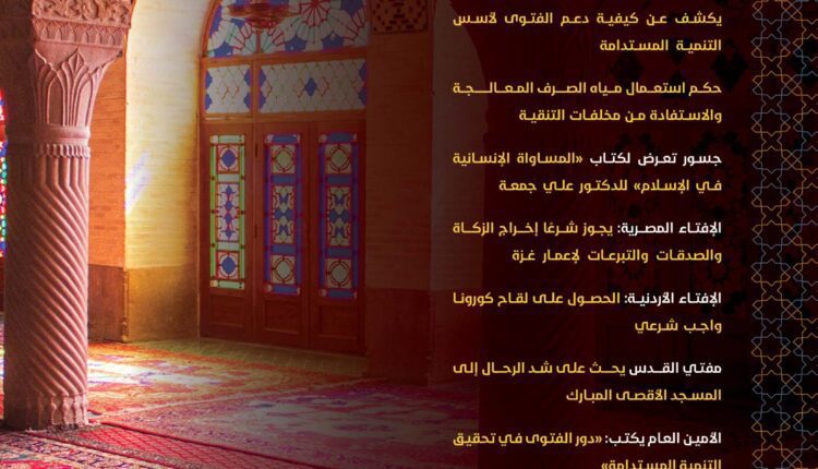 وفي سياق متصل يعرض العدد في باب عالم الإفتاء جولة إخبارية حول أهم مستجدات الإفتاء في المؤسسات الرسمية حول العالم.