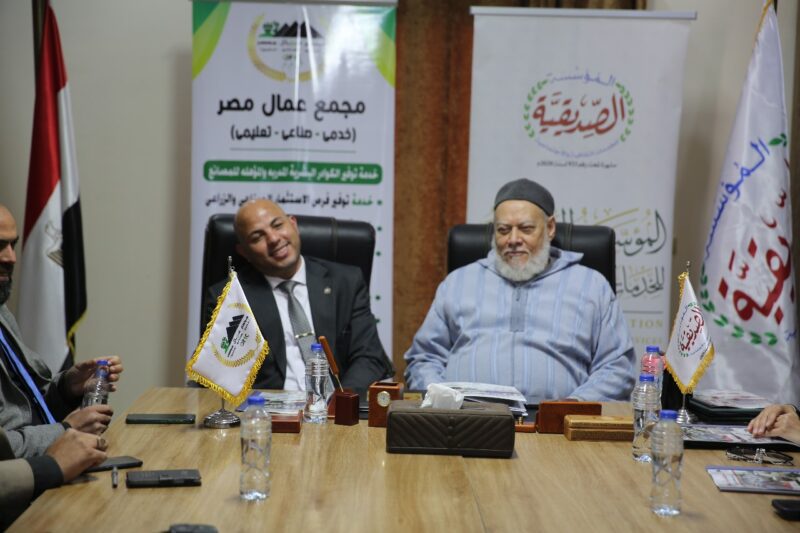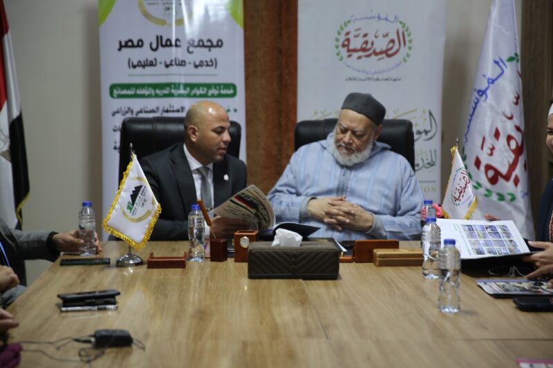 إستقبل الدكتور علي جمعة، رئيس لجنة الشئون الدينية والأوقاف بمجلس النواب، المهندس هيثم حسين رئيس مجلس إدارة مجمع عمال مصر ومجموعة مصانع omc ، ووفد مجمع عمال مصر، وذلك لتوقيع بروتوكول تعاون بين مجمع عمال مصر والمؤسسة الصديقية بهدف تدريب وتأهيل الشباب والفتيات داخل مصانع omc بمقر مجمع عمال مصر بالمنطقة الصناعية بمدينة السادس من أكتوبر.