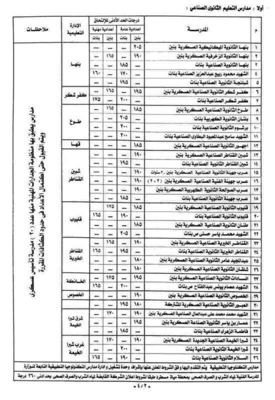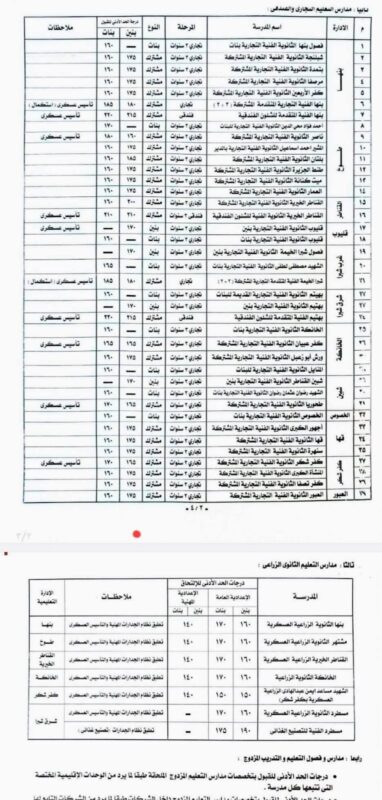 شددت المديرية على أهمية الالتزام بالرغبات وفقًا للحد الأدنى للتنسيق المعلن من مديرية التربية والتعليم بالقليوبية، والذي يختلف حسب نوع التعليم، المدرسة، والإدارة التعليمية والتي يمكن الاطلاع عليها من الجداول المرفقة.
