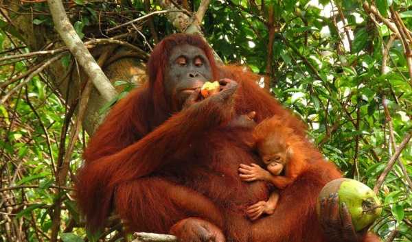 يتعرض انسان الغاب للخطر ، بسبب ازالة الغابات من بيئته ، ويختفي انسان الغاب بمعدل 1000 في السنة ، وهناك حوالي 7،000 – 9،000 من انسان الغاب السومطرى مات خلال السنوات الماضية .