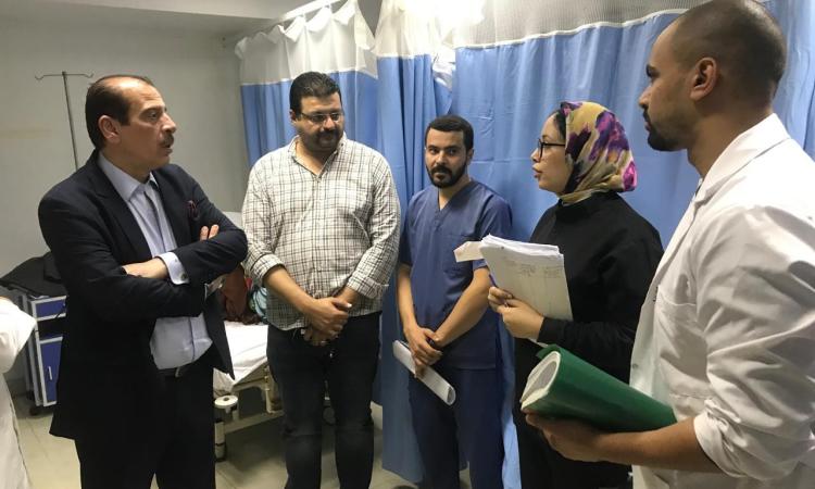 وتابع نائب الوزير جولته للمستشفى بتفقد الأقسام الداخلية ومتابعة الحالات المرضية، واستمع للمرضى ومدي رضاهم عن الخدمات الطبية المقدمة، وشدد على الإلتزام بإجراءات مكافحة العدوى بالرعاية المركزة، ووجه بتثبيت عمل التمريض في الأماكن الحرجة مثل الرعاية المركزة للمتابعة الجيدة للحالات، كما راجع عدد غرف العمليات ومعدلات التشغيل للعمليات.