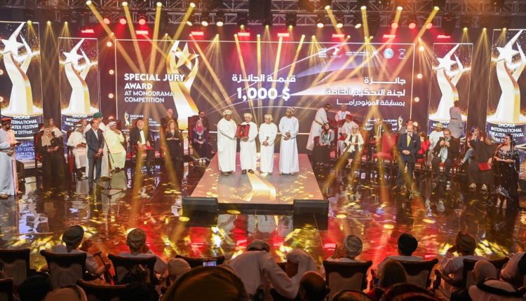 رعى الدكتور عبدالله بن ناصر الحراصي، وزير الإعلام حفل تكريم الفائزين بجوائز مهرجان ظفار الدولي للمسرح في دورته الأولى الذي نظمته بلدية ظفار بالتعاون مع وزارة الثقافة والرياضة والشباب والجمعية العُمانية للمسرح، بمشاركة 350 فنانًا وفنانة من 50 دولة، واستمر 8 أيام.