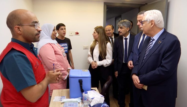زار وزير الصحة الفلسطيني د. ماجد أبو رمضان وسفير دولة فلسطين لدى جمهورية مصر دياب اللوح، اليوم الثلاثاء، مركز التطعيم للطلبة الفلسطينيين القادمين من قطاع غزة في المقر السابق لسفارة دولة فلسطين، حيث كان في استقبالهم وكيل وزارة الصحة المصرية للصحة العامة د.محمد عبدالفتاح، وبحضور مدير عام صحة الأسرة في وزارة الصحة الفلسطينية د. عماد المصري، والمستشار أول بسفارة دولة فلسطين بالقاهرة القنصل نداء البرغوثي.