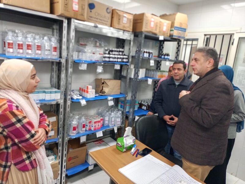 تفقد أقسام الاستقبال، الأسنان، العيادات الخارجية، الأشعة، العناية المُركزة، الصيدلية، المطبخ.