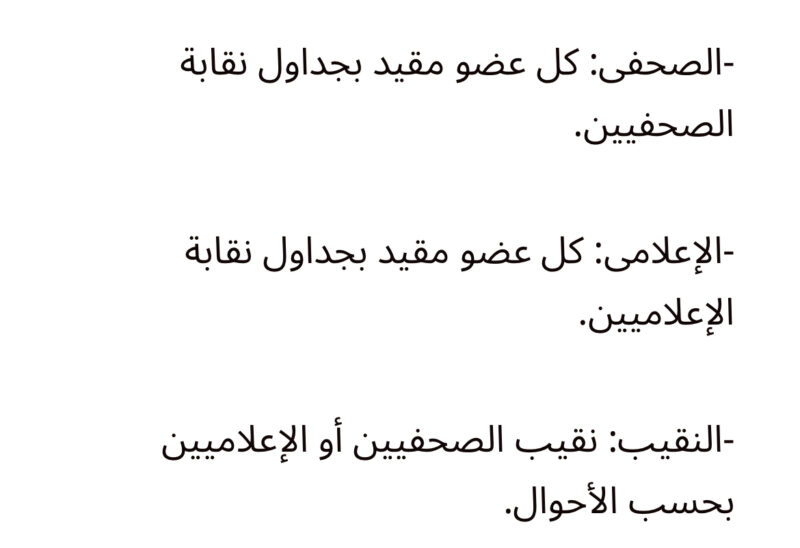 والإعلامي: كل عضو مقيد بجداول نقابة الإعلاميين