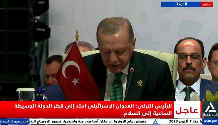 جاء ذلك خلال كلمة الرئيس التركي، اليوم الإثنين، أمام القمة العربية الإسلامية الاستثنائية لبحث الهجوم الإسرائيلي على قطر