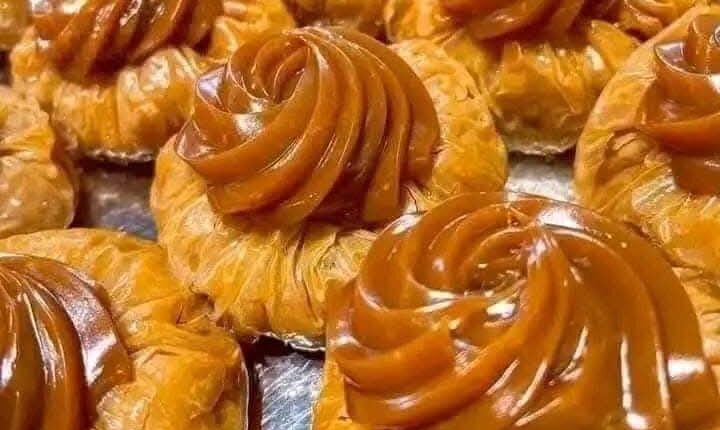 نقسم الجلاش نصفين بالسكينه وناخد طبقة من الجلاش وندهنها بالسمنة ونطبقها علي شكل مربع وندهنها مره تانيه وبعدين نلفها علي مسن أو خشبة رفيعة زي القلم الرصاص وبعدين نخرجها ونلفها دايره علي بعضها.