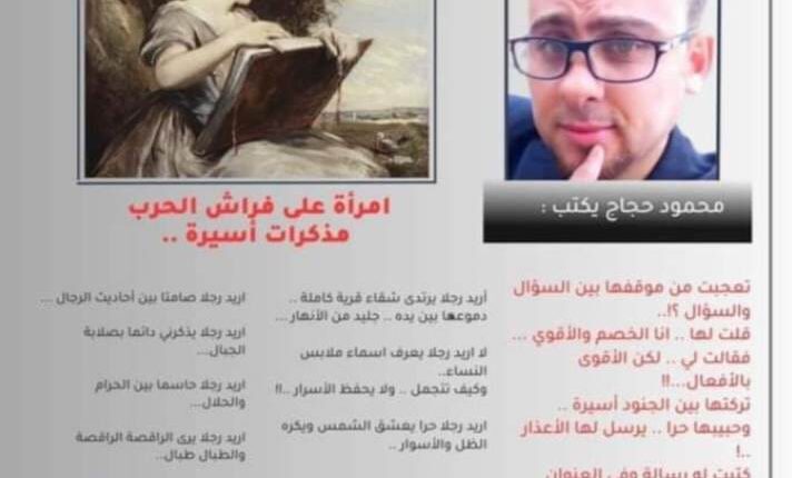 أشاد النجم الكبير محمد صبحي بقصيدة امرأة علي فراش الحرب ” مذكرات اسيرة” للكاتب الشاب محمود حجاج