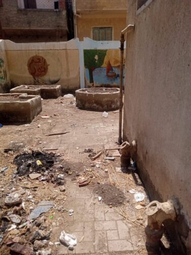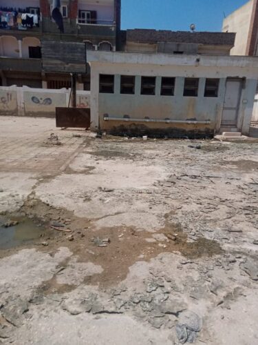 تحولت إلى أشبه بالبيت المهجور، بسبب الإهمال في أعمال النظافة والنظام، فتراكمت في محيطها وبجوار أسوارها وأيضًا داخل بداخلها أكوام القمامة، وتلفت شبكة الصرف الصحي التي تسبب في مجموعة من البرك والبحيرات داخل الفناء وحول المبنى.