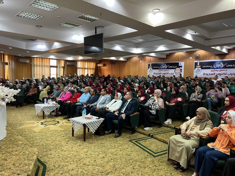 أعلام نصر أكتوبر ترفرف علي سماء جامعة كفرالشيخ في احتفالية كلية التجارة