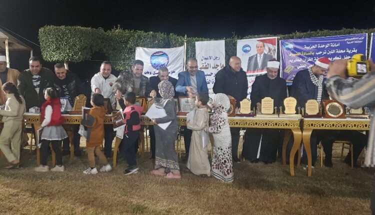 أكبر احتفالية في مركز بسيون لتكريم حفظة القرآن الكريم، مساء اليوم التي نظمها عائلة الفقى بمحلة اللبن على روح المغفور لة الحاج حلمى الفقى برعاية المهندس ماجد الفقى لتكريم 400من حفظة كتاب الله، وسط أجواء مبهجة وفرحة بين الأطفال والكبار بالقرية.