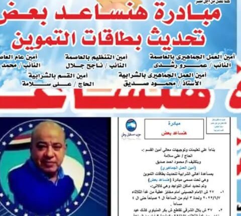 أطلق مستقبل وطن بالشرابيه بقيادة الحاج علي سلامة آمين اللجنة بالشرابيه مبادرة لاستخراج وتجديد بطاقات التموين لأبناء حي الشرابيه لتخفيف الضغط والعبئ عليهم ومساهمة من مستقبل وطن وقياداته بالشرابيه والزاوية الحمراء وكذالك أعضاء مجلس النواب والشيوخ بها.