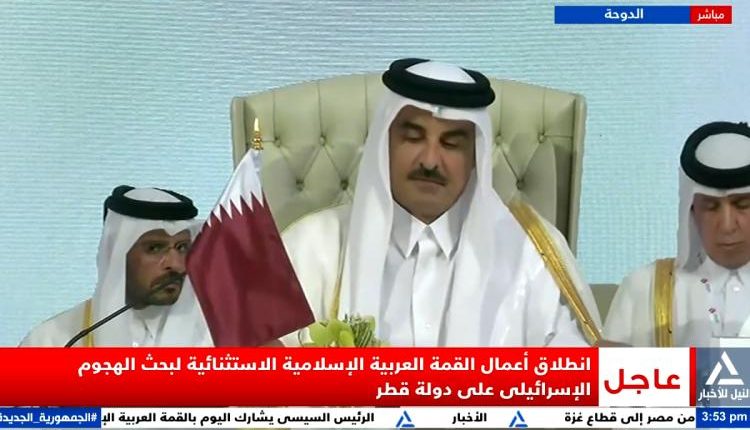 أكد الأمير تميم بن حمد آل ثاني، أمير دولة قطر، رئيس القمة العربية الإسلامية المشتركة الطارئة، ان الدوحة تقوم بدور وساطة فعال مع الشقيقة مصر والولايات المتحدة لحل الأزمة في غزة