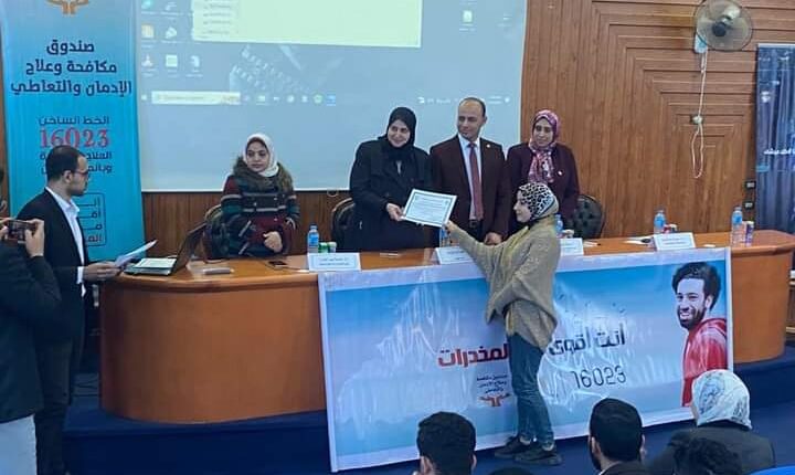 برعاية الدكتور عبدالرازق دسوقي رئيس الجامعة وإشراف الدكتور مها أبو جازية عميد الكلية .. بالاشتراك مع صندوق مكافحة وعلاج الإدمان التابع لمجلس الوزراء .. ضمن حملة «أنت أقوى من المخدرات» .. وتم تسجيل أسماء الطلاب الراغبون في التطوع للانضمام للحملة وتوعية المزيد من الطلاب والمجتمع المحيط بهم.