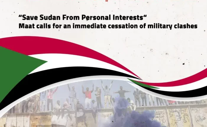 تدين مؤسسة ماعت للسلام والتنمية وحقوق الإنسان بشديد اللهجة الاشتباكات المسلحة بين الأطراف العسكرية في السودان، وتُحمّل جميع الأطراف المسؤولية الكاملة لوقف هذه العمليات فورًا لإنقاذ السودان من المصالح الشخصية التي تخيم على واقع ومستقبل السودان منذ ثورة 2019.