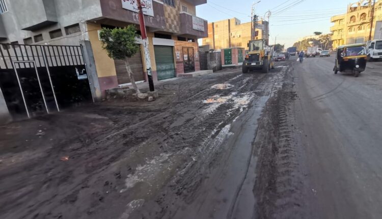 إزالة التراكمات الطينية الناجمة عن مياه الأمطار ببيلا