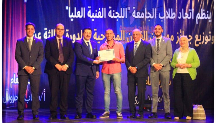شهد الدكتور على عبد المحسن القائم بأعمال نائب رئيس الجامعة لشئون التعليم والطلاب، حفل اعلان وتوزيع جوائز مهرجان الفنون المسرحية في دورته الثالثة عشر لطلاب الجامعة لعام ٢٠٢٣