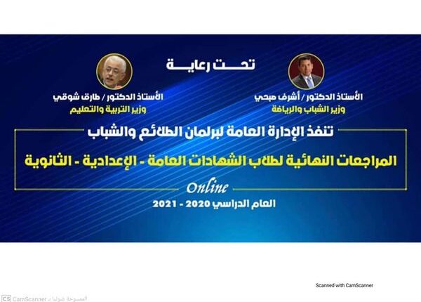 وافق الدكتور اشرف صبحى- وزير الشباب والرياضة ،على بدء المراجعات النهائية الإليكترونية لطلاب الشهادتين الإعدادية والثانوية ،يوم الأحد المقبل ، والتى ستذاع مباشرة على الهواء من خلال البوابة الإليكترونية للوزارة وبرنامج زووم من خلال رابط خاص بالبرامج التعليمية يتم توزيعه والاعلان عنه من خلال وسائل الاعلام والموقع الإليكترونى ومراكز الشباب على مستوى الجمهورية حتى يستطيع جميع الطلاب فى المدن والقرى والنجوع أن يستفيد من تلك المراجعات التى تتم بالتنسيق مع وزارة التربية والتعليم .