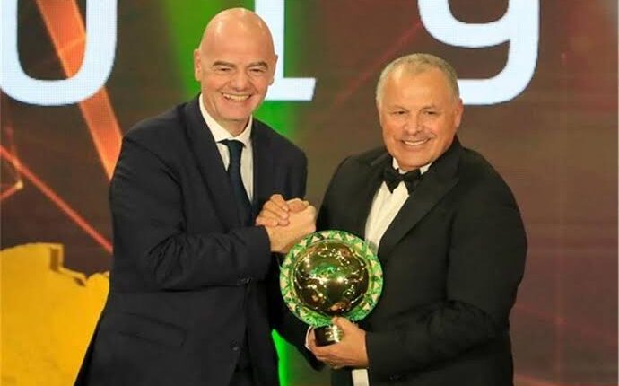 تقدم السويسري جياني إنفانتينو رئيس الاتحاد الدولي لكرة القدم، فيفا، بالتهنئة للمهندس هاني أبوريدة رئيس الاتحاد المصري لكرة القدم بمناسبة انتخابه عضوًا في مجلس الاتحاد الدولي “فيفا” للدورة الخامسة كأقدم عضو في أعلى هيئة كروية في العالم .