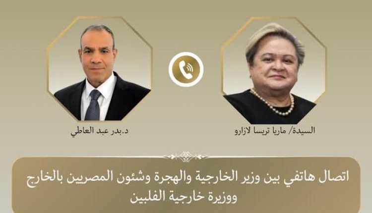 أجرى د. بدر عبد العاطي وزير الخارجية والهجرة وشئون المصريين بالخارج اتصالاً هاتفياً مع السيدة “ماريا تريسا لازارو” وزيرة خارجية الفلبين اليوم الخميس، وذلك لبحث سبل تعزيز التعاون الثنائي بين البلدين.