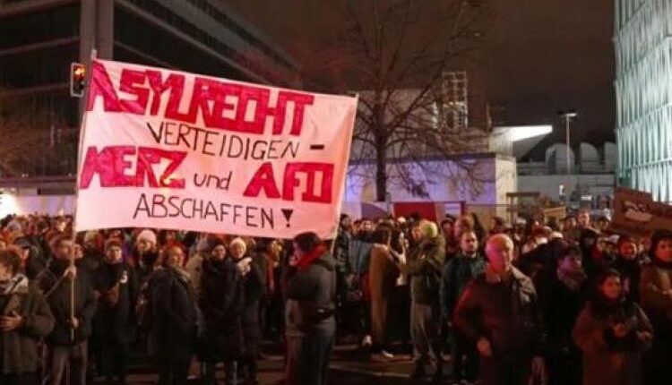 شارك مئات الأشخاص الليلة الماضية في مظاهرة خارج مقر حزب الاتحاد الديمقراطي المسيحي (يمين الوسط) في برلين احتجاجا على اعتماد اقتراح يهدف إلى تشديد سياسة الهجرة في ألمانيا.