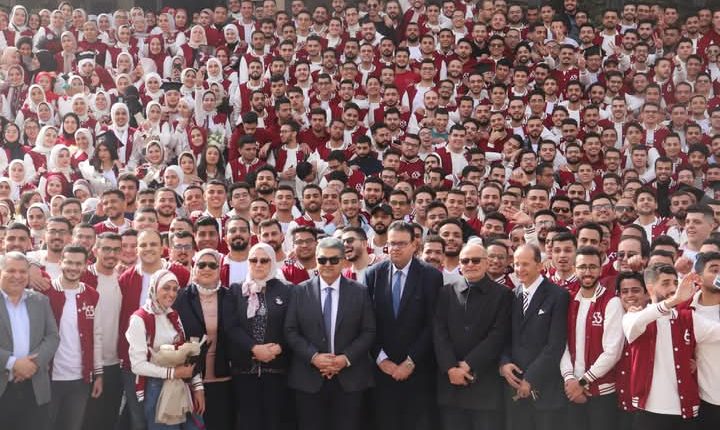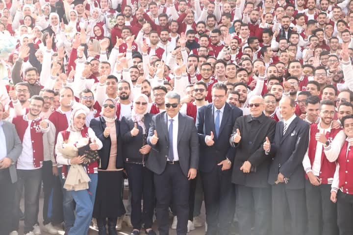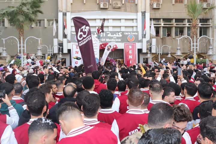 نظم طلاب الدفعة ٦٣ بكلية الطب جامعة طنطا دور نوفمبر ٢٠٢٤ م ” نظام النقاط المعتمدة ٥ + ٢ ” احتفالا بأخر أيام الامتحانات , ممرا شرفيا للدكتور أحمد غنيم عميد كلية الطب جامعـة طنطـا ورئيس مجلس إدارة المستشفيات الجامعية والدكتورة هويدا إسماعيل وكيل الكلية لشئون التعليم والطلاب مع التقاط عددا من الصور التذكارية تقديرا وعرفانا لدعم سيادتهم لهم خلال فترة دراستهم بالكلية، ولاهتمامهم بتنظيم تدريبهم داخل قطاعات المستشفيات الجامعية خلال فترة الإمتياز القادمة خلال الفترة من ١ / ٣ / ٢٠٢٥ حتى ٢٨ / ٢ / ٢٠٢٧ م تحت إشراف إدارة المستشفيات الجامعية ونخبة متميزة من السادة أعضاء هيئة التدريس والهيئة المعاونة بالكلية ومستشفياتها وبحضور الدكتور محمد حنتيرة وكيل الكلية لشئون الدراسات العليا والبحوث والدكتور لؤى الأحول وكيل الكلية لشئون خدمة المجتمع وتنمية البيئة وعددا من السادة رؤساء الأقسام وأعضاء هيئة التدريس وأسر الطلاب .