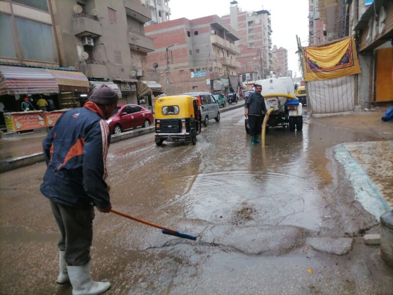كما تم المرور بصفة دورية علي أماكن تجمعات المياه لازاحتها علي بلاعات صرف مياه الأمطار بعد توقف سقوط الأمطار.
