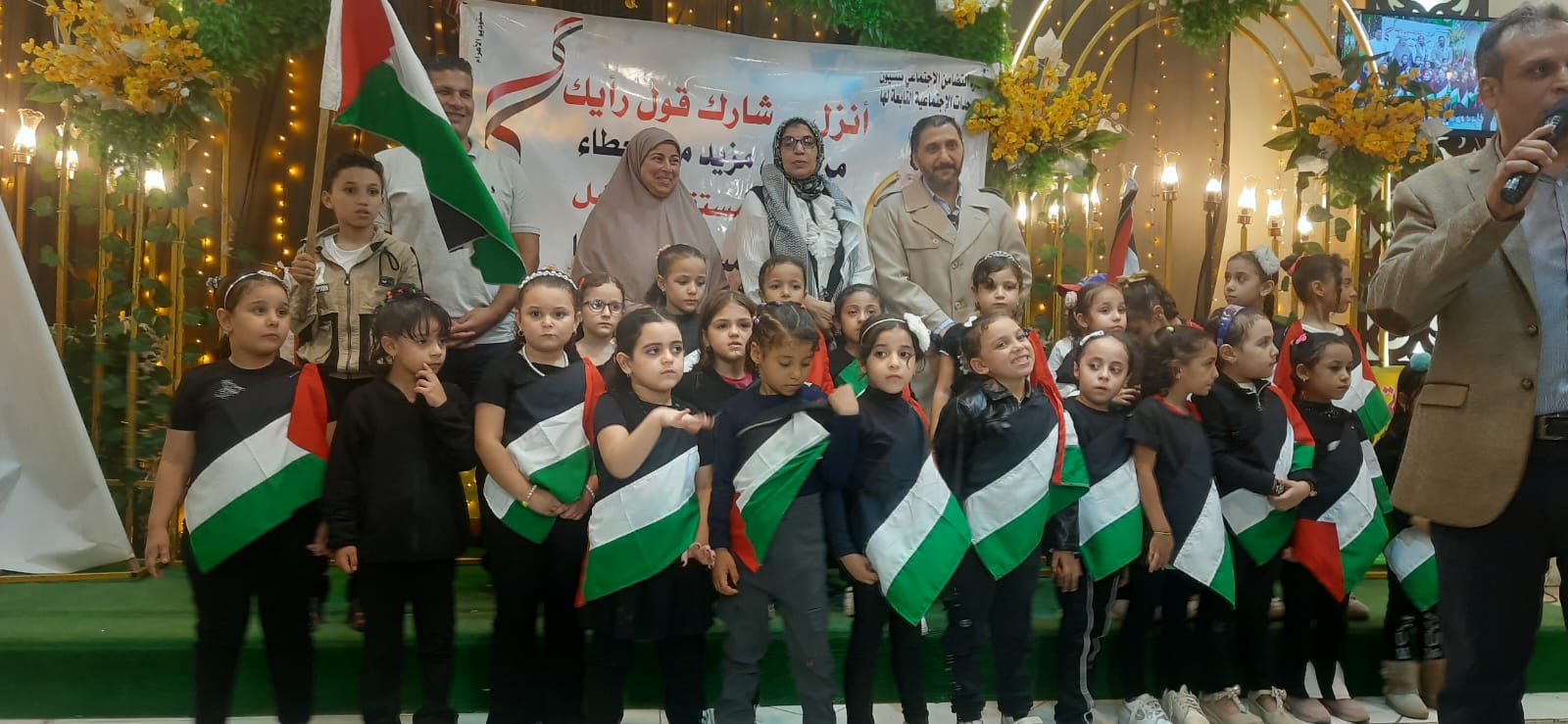 وبحضور الشيخ جمال الزمراني مدير اداره الأوقاف والاعلامى يوسف سلامة المحاسب رمزي الصاوي صاحب حضنات عباقره المستقبل و امتثال خلف امين امراة بحزب مستقبل وطن واسماء امين الطاقة والبيئة بالحزب ولفيف من رؤساء مجالس الجمعيات الاهليه داعمين للقضيه الفلسطينيه