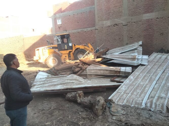كما قام حي العمرانية بإزاله غرف مقامه بالمخالفة بشارع عيد اللولي مع اتخاذ الإجراءات القانونية حيال المخالفين .