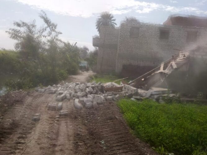 وفي مركز ومدينة منشاة القناطر تم ازاله ٥ حالات تعدي علي الاراضي املاك الدوله وذلك بالتعاون مع هندسة الرياح بقرية نكلا .