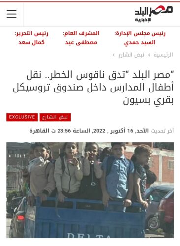 استجابة فورية لما سبق ان نشرناه ” بمصر البلد” لواقعة نقل اطفال مدرسة داخل ترويسكل ادارة مرور بسيون ضبط ترويسكل الموت ينقل أطفال المدارس