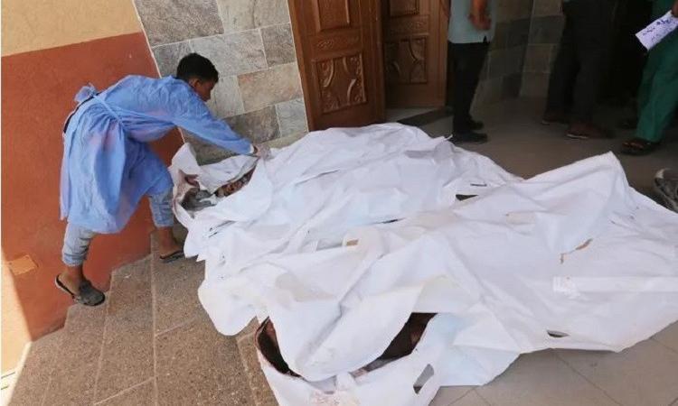 وفي الحي نفسه، ارتكب جيش الاحتلال مجزرة بقصفه خيمة تؤوي نازحين ما أسفر عن استشهاد 5 مواطنين بينهم 3 أطفال، وغرب المدينة، استشهد 4 مواطنين (زوجان وابنتاهما) بقصف من طائرات الاحتلال استهدف شقة سكنية خلف مدرسة أبو عاصي في مخيم الشاطئ .